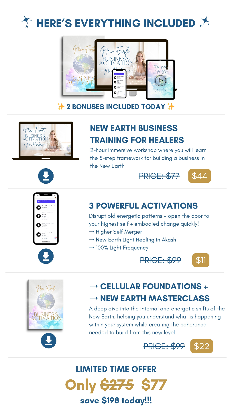 Inside this New Earth Activation Experience, you will experience our 5-step framework through a multi-dimensional approach that activates your New earth grid, grounds your body into the New Earth, and aligns your spirit, so your growth becomes something you can actually hold and build from.